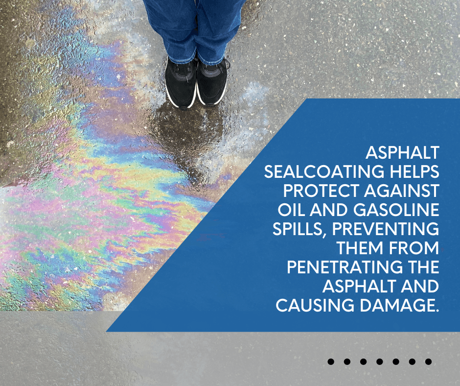 By applying a sealant, sealcoating inhibits the oxidation process, keeping the asphalt flexible, resilient, and less susceptible to damage.